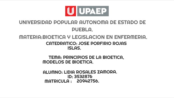 UNIVERSIDAD POPULAR AUTONOMA DE ESTADO DE PUEBLA. MATERIA:BIOETICA Y LEGISLACION EN ENFERMERIA.