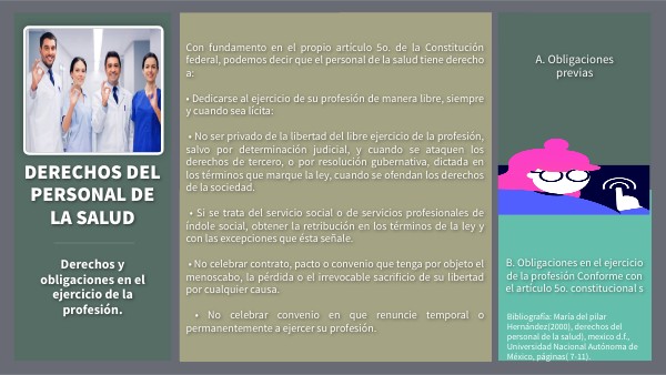 Bibliografía: María del pilar Hernández(2000), derechos del personal de la salud), mexico d.f., Universidad Nacional Autónoma de México, páginas( 7-11).