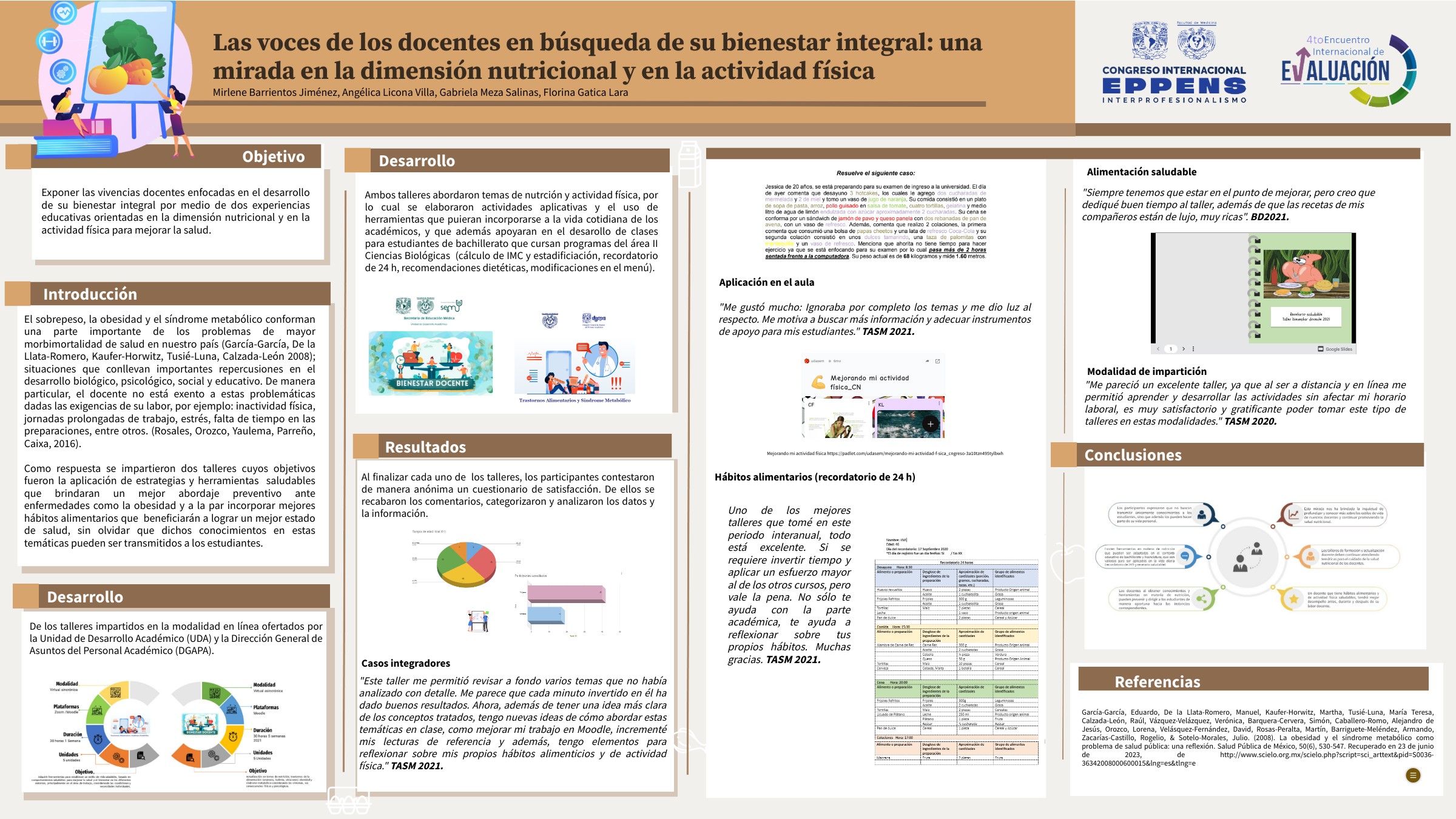 El sobrepeso, la obesidad y el síndrome metabólico conforman una parte importante de los problemas de mayor morbimortalidad de salud en nuestro país (García-García, De la Llata-Romero, Kaufer-Horwitz, Tusié-Luna, Calzada-León 2008); situaciones que conllevan importantes repercusiones en el desarrollo biológico, psicológico, social y educativo. De manera particular, el docente no está exento a estas problemáticas dadas las exigencias de su labor, por ejemplo: inactividad física, jornadas prolongadas de trabajo, estrés, falta de tiempo en las preparaciones, entre otros. (Rosales, Orozco, Yaulema, Parreño, Caixa, 2016). Como respuesta se impartieron dos talleres cuyos objetivos fueron la aplicación de estrategias y herramientas saludables que brindaran un mejor abordaje preventivo ante enfermedades como la obesidad y a la par incorporar mejores hábitos alimentarios que beneficiarán a lograr un mejor estado de salud, sin olvidar que dichos conocimientos en estas temáticas pueden ser transmitidos a los estudiantes.