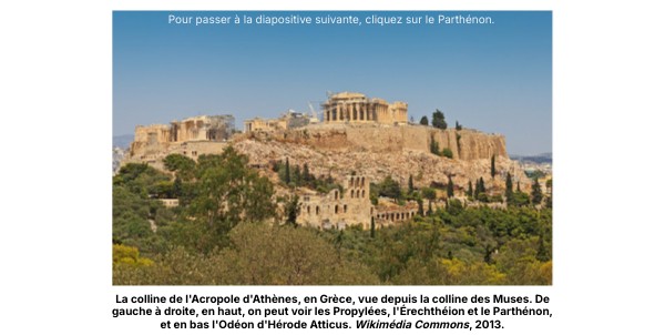 Pour passer à la diapositive suivante, cliquez sur le Parthénon.