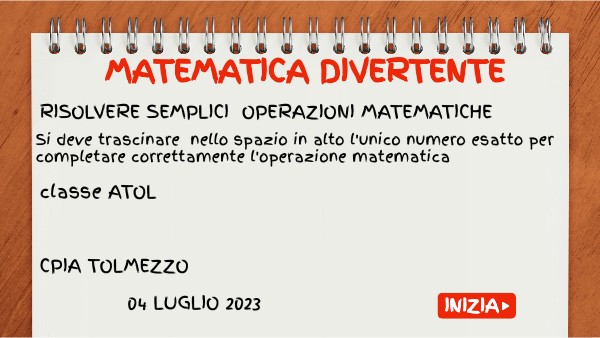 Si deve trascinare nello spazio in alto l'unico numero esatto per completare correttamente l'operazione matematica