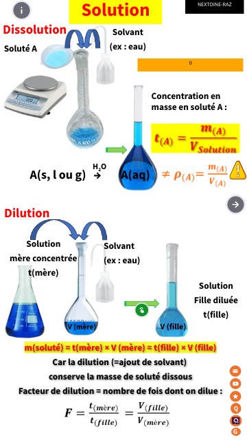 m(soluté) = t(fille) × V (fille) = t(mère) × V (mère) Car la dilution (=ajout de solvant) conserve la masse de soluté dissous