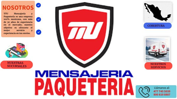 TTU Mensajería y Paquetería es una empresa 100% mexicana, con más de 30 años de experiencia en el mercado; nuestro objetivo es ofrecerte el mejor servicio y experiencia en tus envíos.