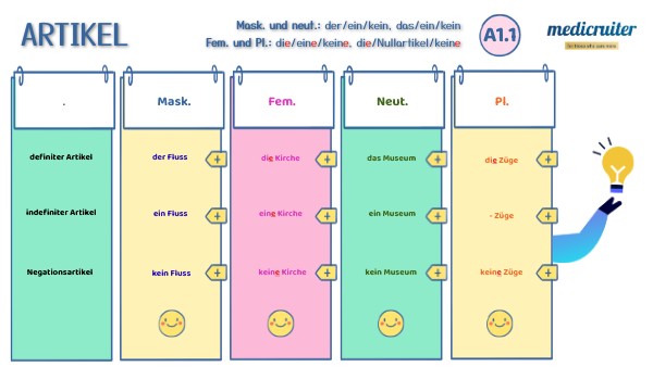 En esta presentación encontrarás una explicación gráfica de los artículos definidos, indefinidos y de la negación con kein(e) en alemán.