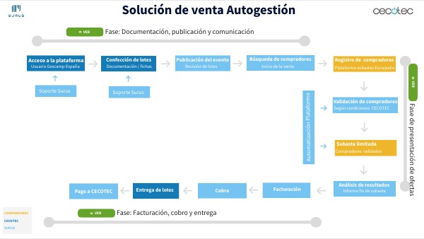 - Pago de los lotes subastados a CECOTEC: A partir de los envíos realizados por el CECOTEC a los adjudicatarios y de la introducción de los mismos en la plataforma de gestión de subastas, CECOTEC recibe mensualmente una Autofactura con el importe por la mercancía vendida y enviada.