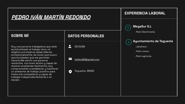 Soy una persona trabajadora que está acostumbrado al trabajo duro, mi objetivo principal es desarrollarme profesionalmente, de modo que busco oportunidades que me permitan hacerlo.Me siento una persona resolutiva con buen ánimo y capaz de resolver problemas fácilmente, soy comprometido a establecer y mantener un ambiente de trabajo positivo para todos mis compañeros y capaz de trabajar independientemente o en equipo.