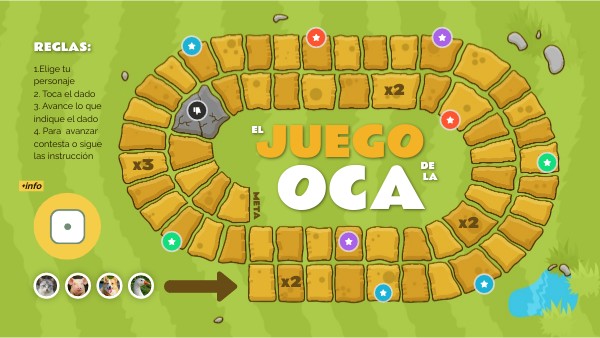 1.Elige tu personaje2. Toca el dado 3. Avance lo que indique el dado 4. Para avanzar contesta o sigue las instrucción