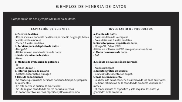 Comparación de dos ejemplos de mineria de datos.
