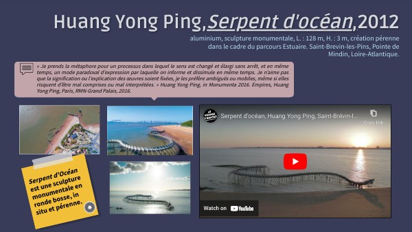 « Depuis mon arrivée en France, je me suis intéressé́ à la question de l’altérité́. L’animal représente l’autre, parfois menaçant. A la vue de ce serpent avec la gueule grande ouverte, peut-être certains visiteurs auront-ils peur. On peut associer cet animal qui mue aux transformations que nous vivons. Pour moi, il s’agit plutôt de prendre du recul et de proposer une oeuvre qui renvoie à toutes les réflexions possibles sur l’organisation du monde actuel...». citation artiste