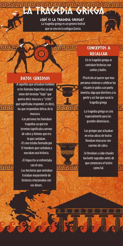 -En la tragedia griega se contaban historias con cantos y bailes.