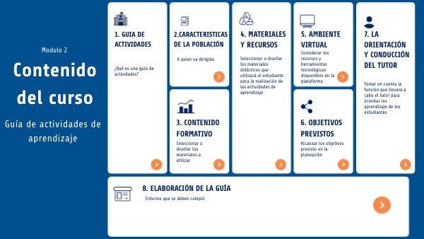 - La guía de actividades permite al instructor planificar el curso de manera estructurada, definiendo claramente qué actividades y tareas se deben llevar a cabo en cada etapa del proceso educativo. Esto ayuda a garantizar que el contenido se presente de manera secuencial y que las actividades estén alineadas con los objetivos de aprendizaje.