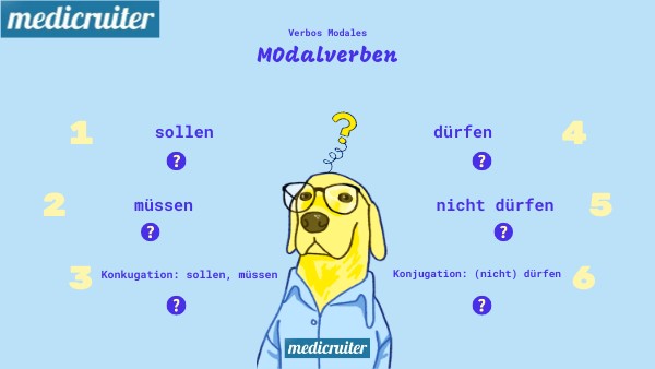 Das Modalverb „sollen“ verwendet man, um Befehle oder Anordnungen auszudrücken, zum Beispiel werden ärztliche Empfehlungen mit Sicherheit über “sollen” geäußert. Beispiele: 1. Soll ich dir einen Kaffee machen? 2. Der Arzt sagt, ich soll die Tabletten nehmen und ich soll nicht arbeiten.