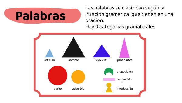 Las palabras se clasifican según la función gramatical que tienen en una oración. Hay 9 categorias gramaticales