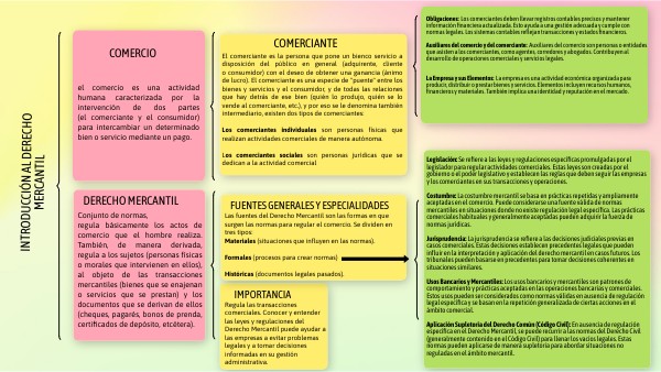 Obligaciones: Los comerciantes deben llevar registros contables precisos y mantener información financiera actualizada. Esto ayuda a una gestión adecuada y cumple con normas legales. Los sistemas contables reflejan transacciones y estados financieros. Auxiliares del comercio y del comerciante: Auxiliares del comercio son personas o entidades que asisten a los comerciantes, como agentes, corredores y abogados. Contribuyen al desarrollo de operaciones comerciales y servicios legales. La Empresa y sus Elementos: La empresa es una actividad económica organizada para producir, distribuir o prestar bienes y servicios. Elementos incluyen recursos humanos, financieros y materiales. También implica una identidad y reputación en el mercado.