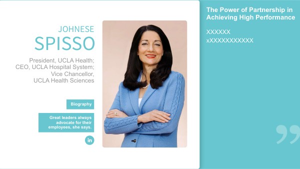 Johnese Spisso discusses the challenges of balancing research and patient care, as well as UCLA Health's innovation center.
