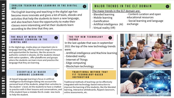 The English learning and teaching in the digital age has become more innovate and gives a lot of tools, ebooks and activities that help the students to learn a new language, and also teachers have the opportunity to make their classes more interesting and let their students learn according to the time that they are.