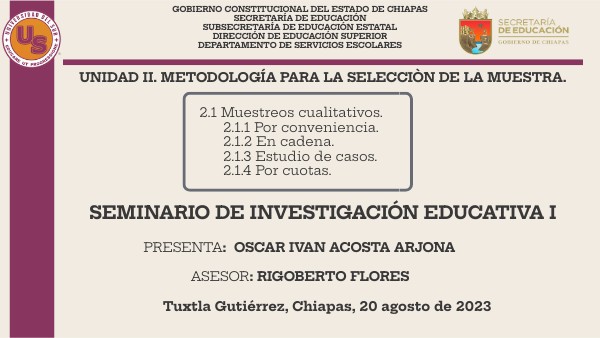 2.1 Muestreos cualitativos. 2.1.1 Por conveniencia. 2.1.2 En cadena. 2.1.3 Estudio de casos. 2.1.4 Por cuotas.