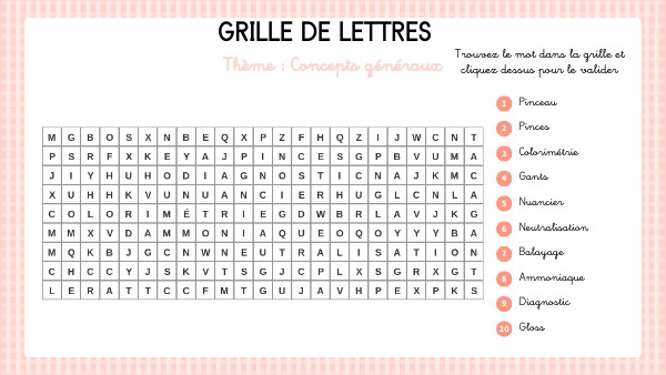 Trouvez le mot dans la grille et cliquez dessus pour le valider
