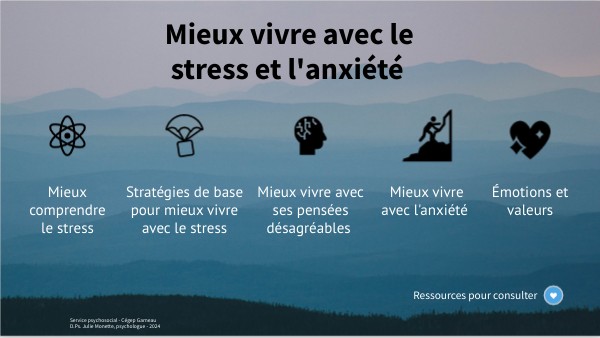 - Le fait de prendre conscience qu'on est en présence d'ingrédients du stress, donc que c'est normal d'en ressentir, est un bon départ pour tenter d'améliorer la situation sans se juger!