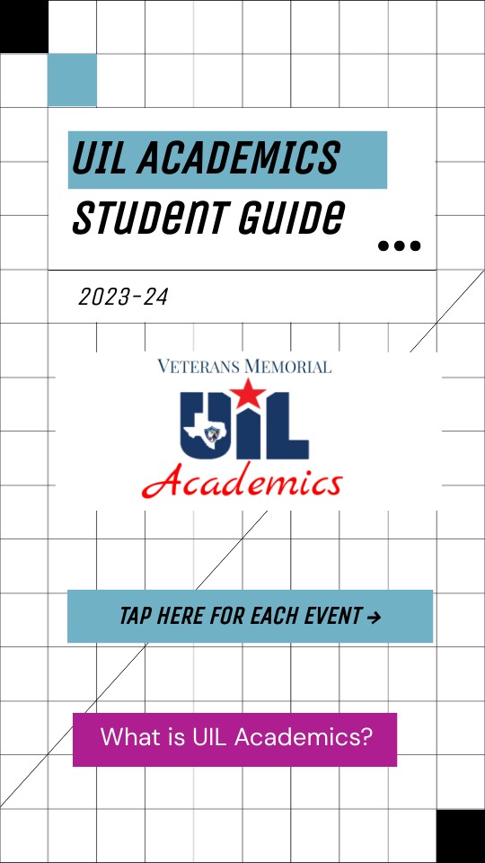 The purpose of the UIL Academic contests are to: 📚 Challenge Yourself 🤔 Think Critically 🌈 Unleash Creativity 🏆 Achieve Mastery 🤝 Collaborate and Connect Win trophies, medals, and ribbons in both team and individual events! Opportunities to compete at the District, Regional, and State level. 📢 Join the UIL Canvas Page 📢