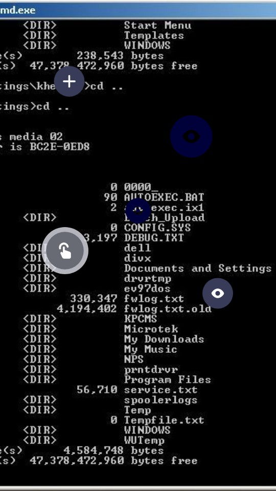 Letra de la unidad: Combinar la letra correspondiente con dos puntos para cambiar de unidad.Ejemplo: C: A: CD Nombre del directorio Cambia al directorio que introduzcas.Por ejemplo: cd c:\windows CD \ El comando DOS “cd” combinado con una barra invertida te llevará al directorio raíz de la unidad actual CD \archivos\fotos Navega al directorio raíz y desde allí al directorio “archivos\fotos”. CD .. Sube un nivel en el directorio. CD ..\archivos\fotos Sube un nivel en el directorio y de ahí al directorio “archivos\fotos”..