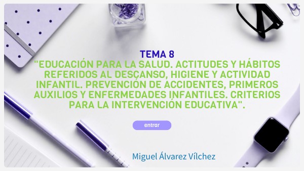 TEMA 8 "EDUCACIÓN PARA LA SALUD. ACTITUDES Y HÁBITOS REFERIDOS AL DESCANSO, HIGIENE Y ACTIVIDAD INFANTIL. PREVENCIÓN DE ACCIDENTES, PRIMEROS AUXILIOS Y ENFERMEDADES INFANTILES. CRITERIOS PARA LA INTERVENCIÓN EDUCATIVA".
