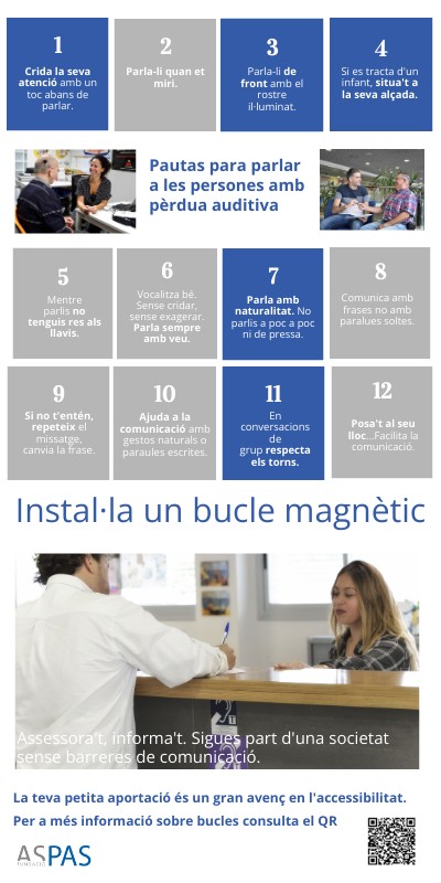 La teva petita aportació és un gran avenç en l'accessibilitat.Per a més informació sobre bucles consulta el QR