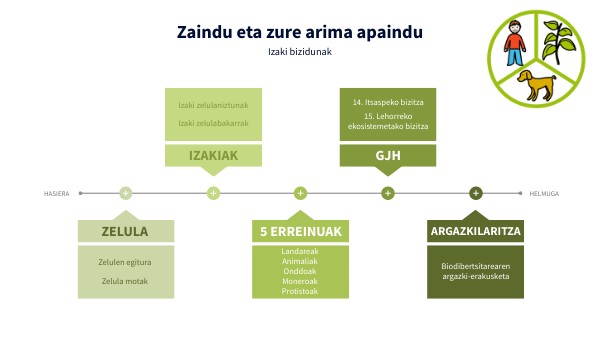 Izaki zelulaniztunen egitura: ehunak, organoak, aparatuak eta sistemak. Izaki zelulabakarrak: birusak, bakterioak, protozooak, alga zelulabakarrak eta onddo zelulabakarrak.