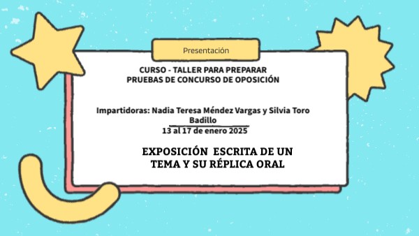 CURSO - TALLER PARA PREPARAR PRUEBAS DE CONCURSO DE OPOSICIÓN Impartidoras: Nadia Teresa Méndez Vargas y Silvia Toro Badillo 13 al 17 de enero 2025