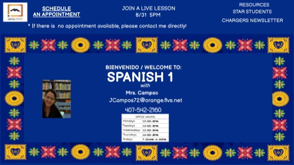 SPANISH 1 LIVE LESSONS WED. 5PM PLEASE JOIN US.