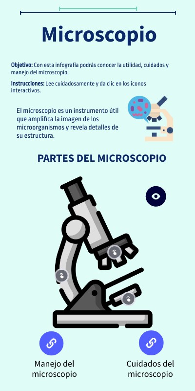 Objetivo: Con esta infografía podrás conocer la utilidad, cuidados y manejo del microscopio.