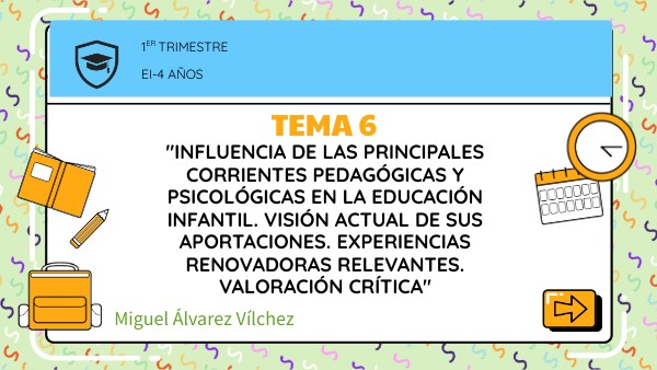 "INFLUENCIA DE LAS PRINCIPALES CORRIENTES PEDAGÓGICAS Y PSICOLÓGICAS EN LA EDUCACIÓN INFANTIL. VISIÓN ACTUAL DE SUS APORTACIONES. EXPERIENCIAS RENOVADORAS RELEVANTES. VALORACIÓN CRÍTICA"