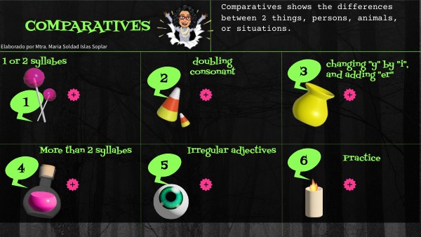 Comparatives show the differences between 2 things, persons, animals, or situations.