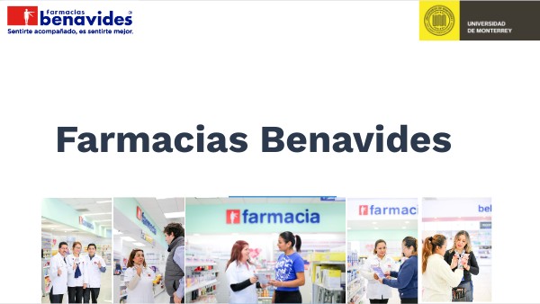 ´15: + 1,000 farmacias. ´17: centenario. ´22: expansión, digitalización, omnicanalidad. Ops sureste Benamedics eCommerce en Mty