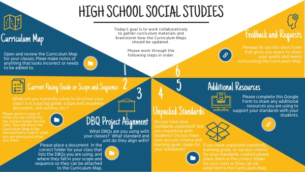 Today's goal is to work collaboratively to gather curriculum materials and brainstorm how the Curriculum Maps should be updated. Please work through the following steps in order.