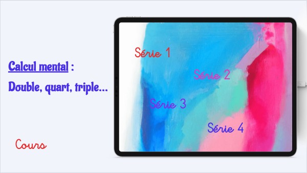 Prendre le double d’un nombre revient à le multiplier par 2. Prendre la moitié d’un nombre revient à le diviser par 2. Prendre le triple d’un nombre revient à le multiplier par 3. Prendre le tiers d’un nombre revient à le diviser par 3. Prendre le quadruple d’un nombre revient à le multiplier par 4. Prendre le quart d’un nombre revient à le diviser par 4.