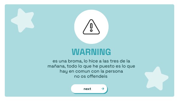 es una broma, lo hice a las tres de la mañana, todo lo que he puesto es lo que hay en comun con la persona no os offendeis