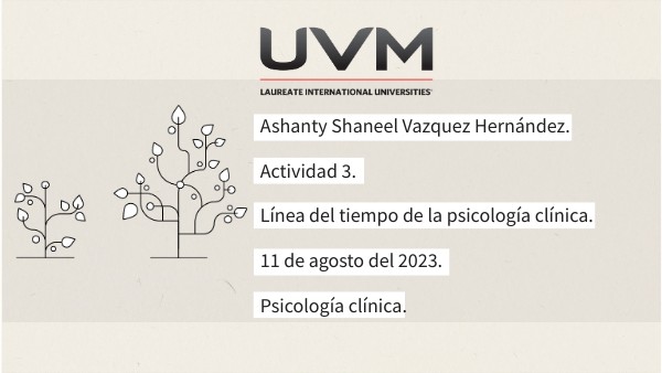 Ashanty Shaneel Vazquez Hernández. Actividad 3. Línea del tiempo de la psicología clínica. 11 de agosto del 2023. Psicología clínica.