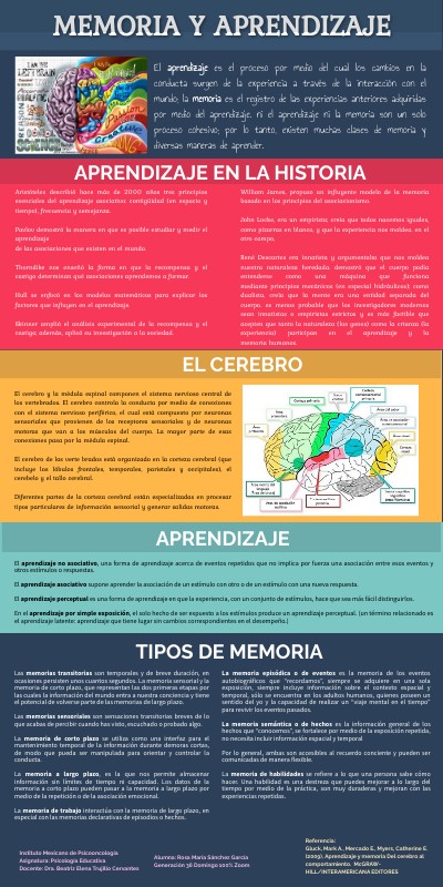 El aprendizaje es el proceso por medio del cual los cambios en la conducta surgen de la experiencia a través de la interacción con el mundo; la memoria es el registro de las experiencias anteriores adquiridas por medio del aprendizaje. ni el aprendizaje ni la memoria son un solo proceso cohesivo; por lo tanto, existen muchas clases de memoria y diversas maneras de aprender.