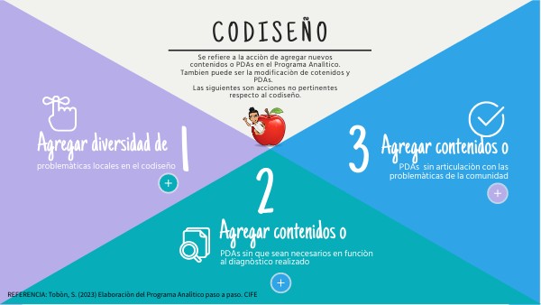 Se refiere a la acciòn de agregar nuevos contenidos o PDAs en el Programa Analìtico. Tambien puede ser la modificaciòn de cotenidos y PDAs. Las siguientes son acciones no pertinentes respecto al codiseño.