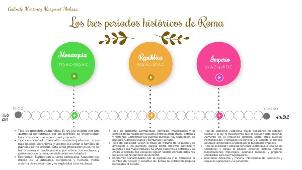 - Tipo de gobierno: Democracia, comicios, magistrados y el senado. Influenciada por la lucha entre la aristocracia, patricios y romanos. Comienzan las guerras púnicas, hay separación de poderes. Comisos (curias y centurias) y senado.