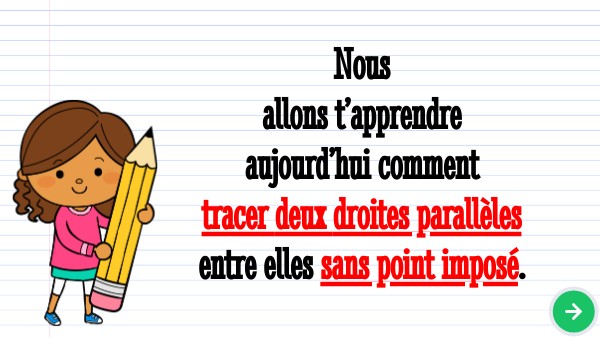 Nous allons t’apprendre aujourd’hui comment tracer deux droites parallèles entre elles sans point imposé.