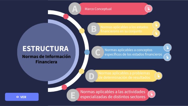NIF A - 1: Estructura de las Normas de Información Financiera.NIF A - 2: Postulados básicos NIF A - 3: Necesidades de los usuarios y objetivos de los estados financieros NIF A - 4: Características cualitativas de los estados financieros NIF A - 5: Elementos básicos de los estados financieros NIF A - 6: Reconocimiento y valuación NIF A - 7: Presentación y revelación NIF A - 8: Supletoriedad