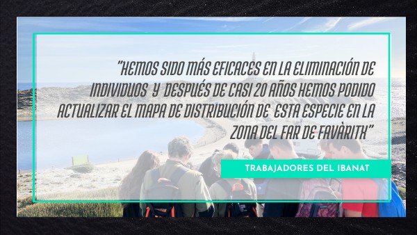 "La experiencia me ha aportado conocimiento, darme cuenta que no solo hay animales invasores también hay plantas y lo que más me gustó fué colaborar con el IBANAT en la campaña de eliminación de Carpobrotus."