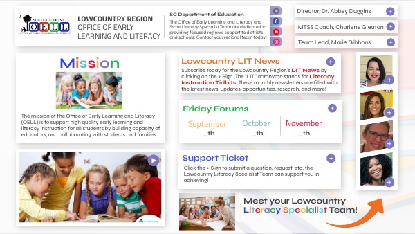 Click the + Sign to submit a question, request, etc. the Lowcountry Literacy Specialist Team can support you in achieving!
