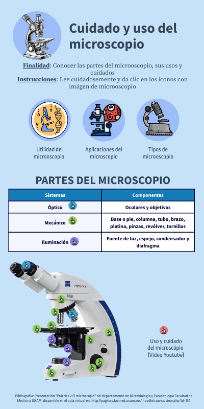 Finalidad: Conocer las partes del microoscopio, sus usos y cuidadosInstrucciones: Lee cuidadosemente y da clic en los íconos con imágen de microoscopio
