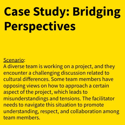 Scenario: A diverse team is working on a project, and they encounter a challenging discussion related to cultural differences. Some team members have opposing views on how to approach a certain aspect of the project, which leads to misunderstandings and tensions. The facilitator needs to navigate this situation to promote understanding, respect, and collaboration among team members.