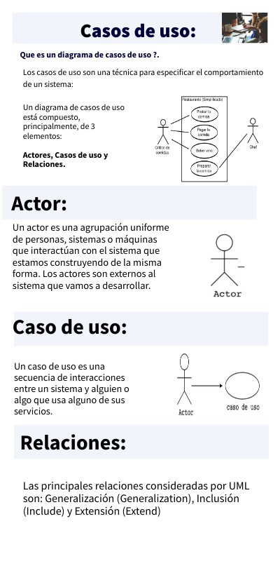 Los casos de uso son una técnica para especificar el comportamiento de un sistema: sistema y alguien o algo que usa alguno de sus servicios.”