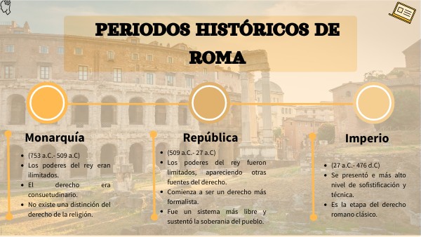 Referencias Scalafed, (s/f), Fases históricas, scalahed.com, recuperado de https://gc.scalahed.com/recursos/files/r161r/w22450w/Clase1/fases_histricas.html Ruz. S, (2022), Las 3 etapas de la antigua Roma: su historia y sus características, psicología y mente, recuperado de https://psicologiaymente.com/cultura/etapas-antigua-roma Gaybas. A, (2022), civilización romana, Enciclopedia humanidades, recuperado de https://humanidades.com/civilizacion-romana/ López. D, (2020), economiapedia, recuperado de: https://economipedia.com/definiciones/economia-del-imperio-romano.html