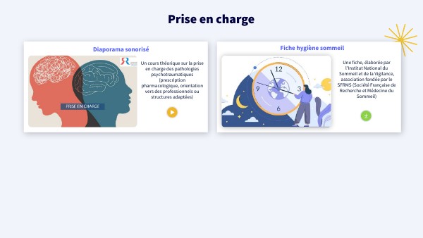 Un cours théorique sur la prise en charge des pathologies psychotraumatiques (prescription pharmacologique, orientation vers des professionnels ou structures adaptées)